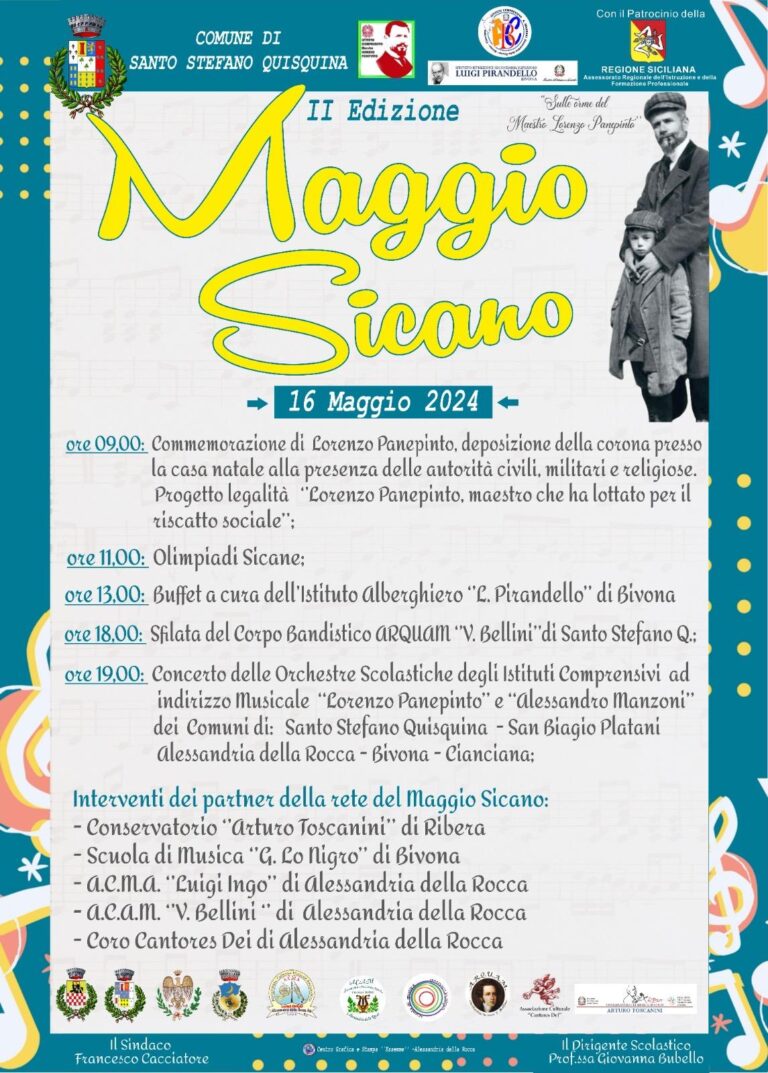 Alfredo Ginexi, rappresentante della poesia e della musica folklorica siciliana, allieterà il pubblico con un concerto di musica, prosa e poesia. A coadiuvarlo sul palcoscenico ci saranno anche Francesco Nicoletta, Giovanni Puleo, Domenico Nicoletta, Francesco Vallone, Salvatore Comparetto, Antonina Ferraro, Sofia Gaetani Liseo, Libero Reina, Ilaria Leto Barone e Roberto Mazzara.