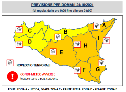 Diramata dalla Protezione Civile, l’allerta arancione per domani