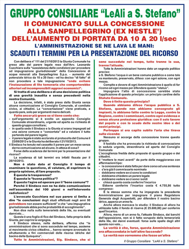 Comunicato stampa del gruppo consiliare “LeAli a S. Stefano”