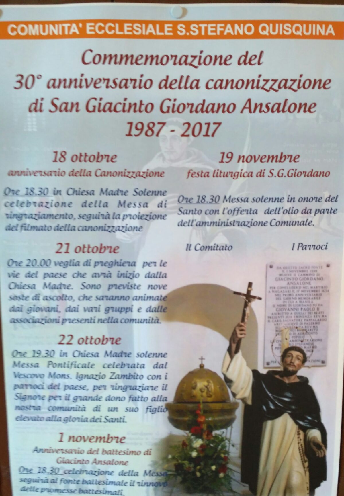 30° anniversario della canonizzazione di S. Giordano: il programma