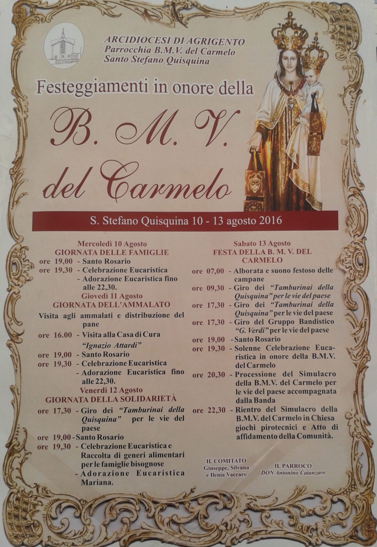 Festa della B. M. V. del Carmelo: il programma