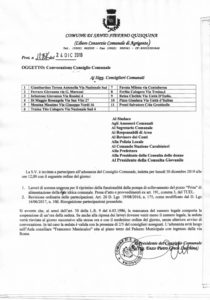 Convocato Consiglio Comunale per il 30 Dicembre 2019Alessandro Mistretta24 Dicembre 2019in Secondo Piano Si informa la cittadinanza che è indetta adunanza del Consiglio Comunale per il giorno 30/12/2019 alle ore 12,00. presso l’Aula Consiliare “F. Maniscalco” del Palazzo Municipale per trattare il seguente ordine del giorno: