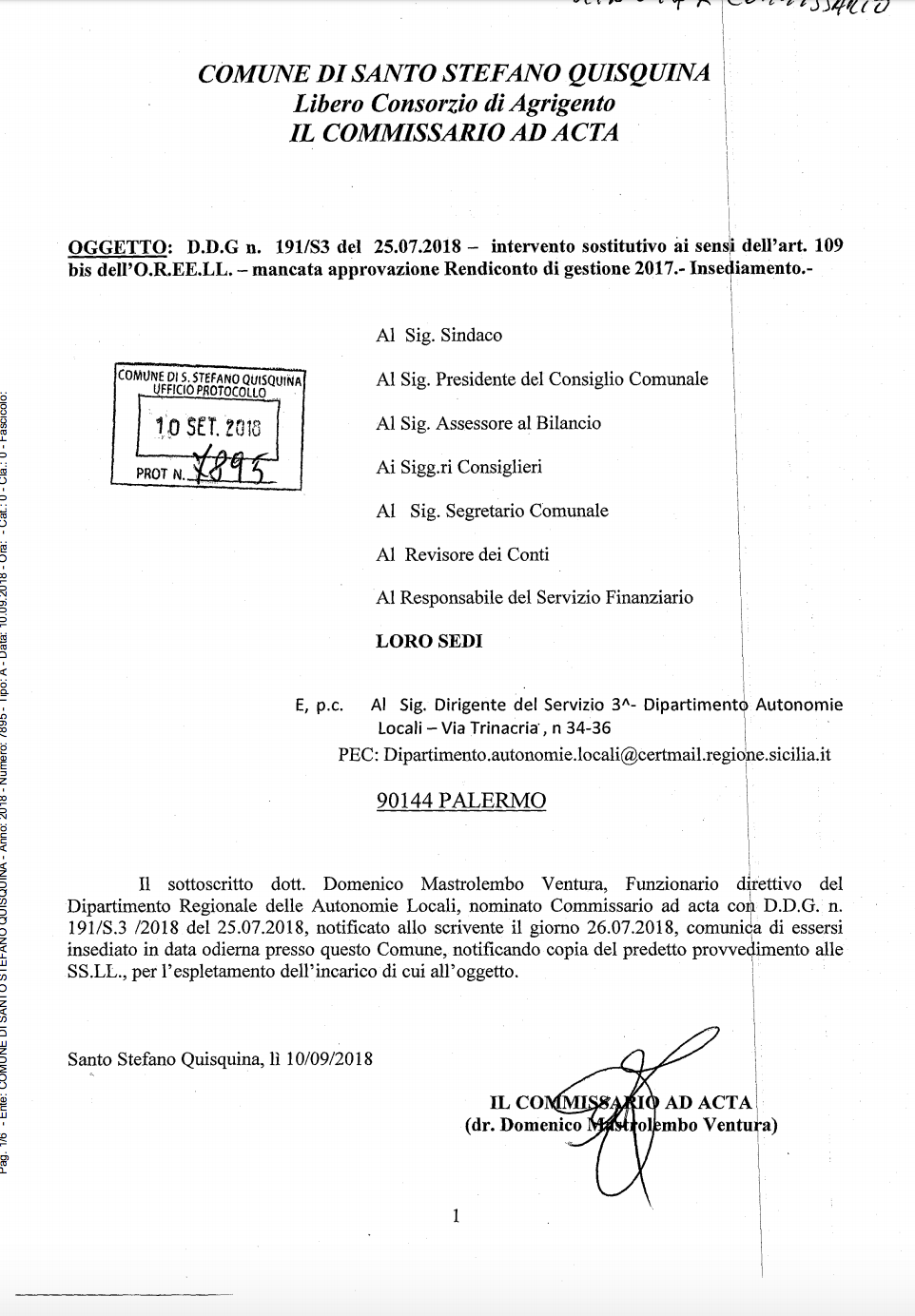 non crede sia Suo preciso dovere mettere nelle condizioni i cittadini di questo Comune di esercitare il diritto-potere di controllo sull’operato dell’Amministrazione, mediante l’accesso diretto agli atti prodotti dalla Sua amministrazione, e non attraverso canali ufficiosi e non monitorabili come quelli dei Social Media e/o canali telematici?Santo Stefano Quisquina, li 18/09/2018