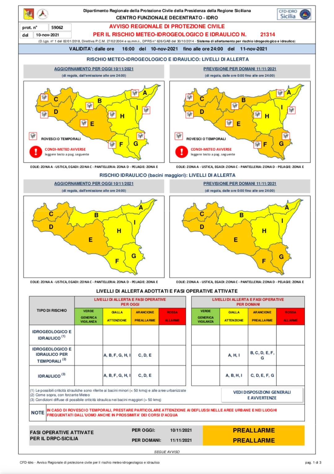 ORDINARIA CRITICITA’ PER RISCHIO IDROGEOLOGICO / ALLERTA GIALLA: