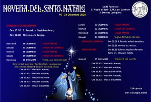 Di seguito il programma completo delle celebrazioni natalizie: