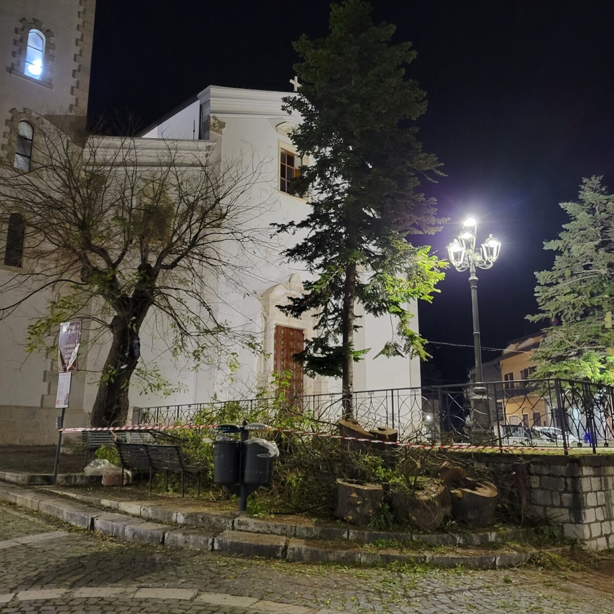 Ora, con l’abbattimento, il paesaggio della piazza ha subito un notevole cambiamento. Il prospetto della Chiesa Madre, un simbolo architettonico e religioso del paese, è ora completamente visibile, privo della cornice verde che lo accompagnava da anni.