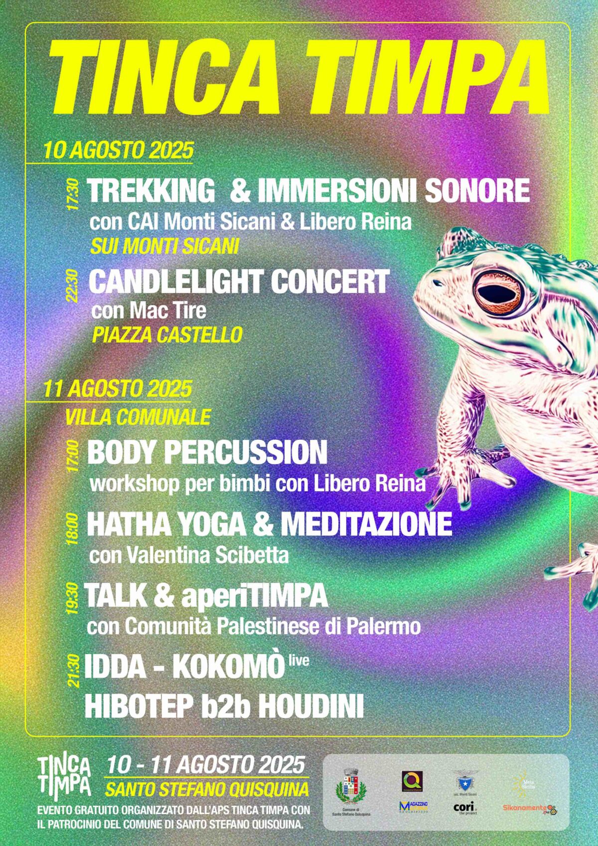 Al centro, lo spirito Tinca Timpa: uno spirito che vive in chi coltiva amicizia, rispetto, amore e cura, per la terra che abitiamo, per noi stessi, per chi ci cammina accanto.